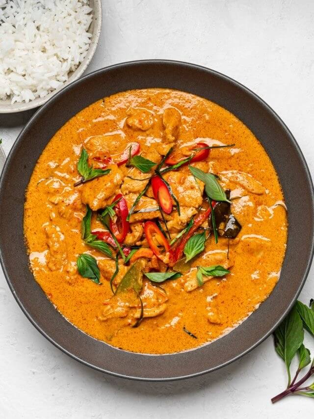 A creamy thai curry with a deep, rich flavour simmered in a blend of panang curry paste, coconut milk and crushed peanuts.